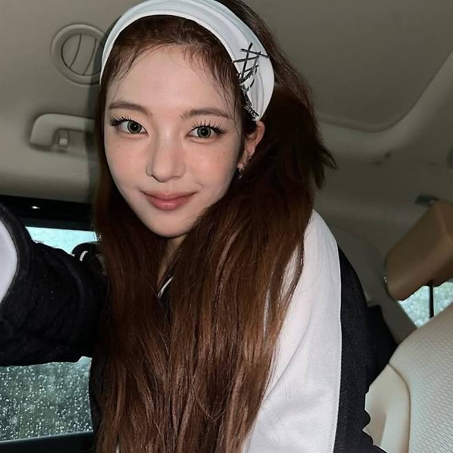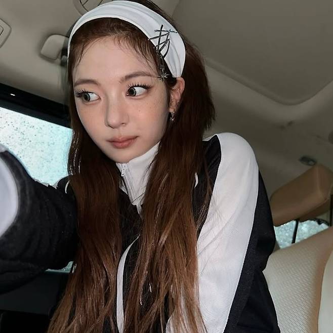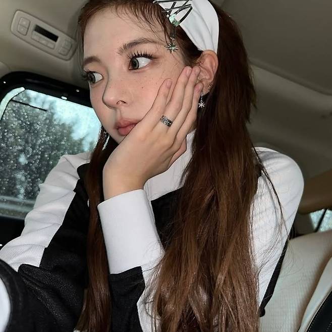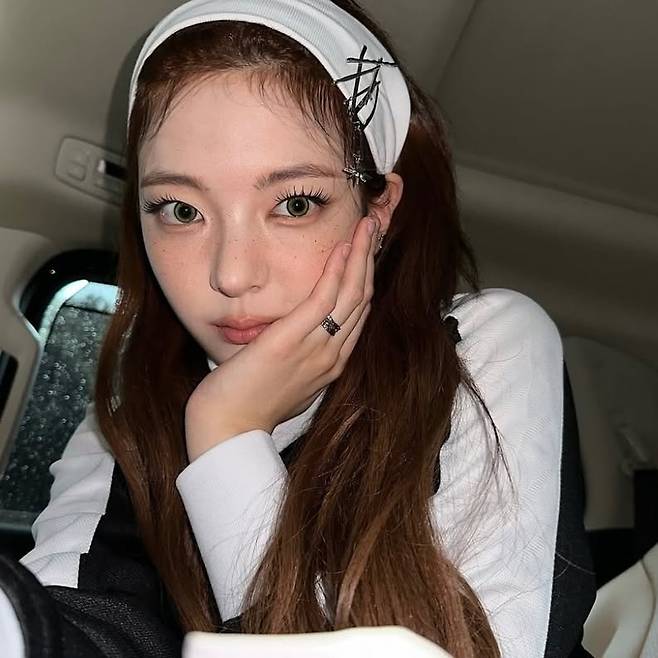 카메라를 응시하는 눈빛엔 쿨함과 귀여움이 공존하고, 긴 머리는 매끈하게 늘어져 부드러운 라인을 완성해줘요.