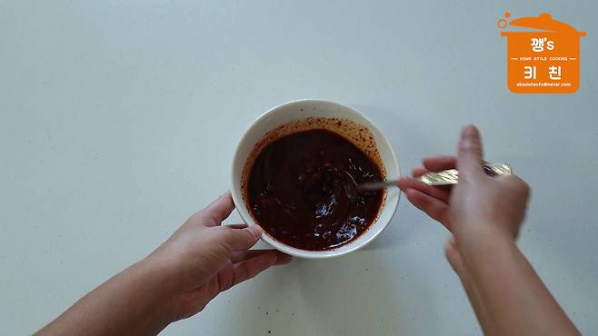 물 반컵, 된장 1큰술, 고추장 1큰술,