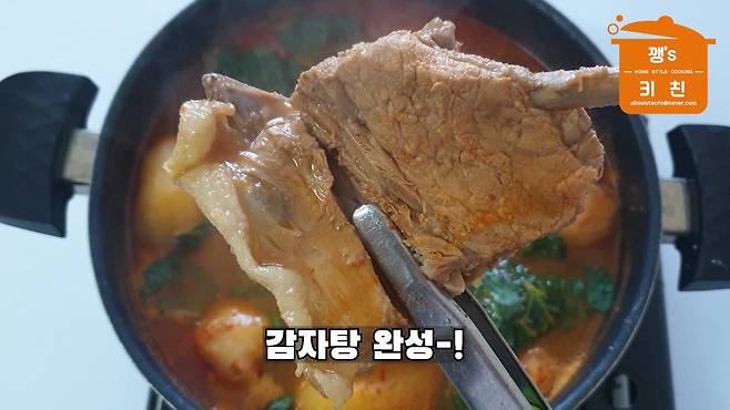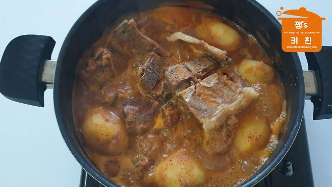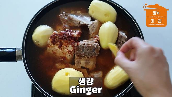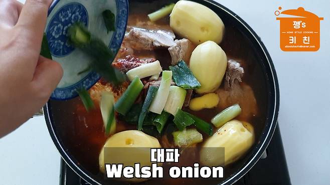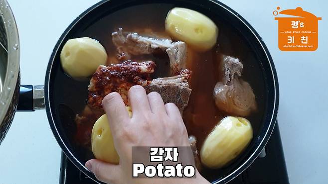 7. 냄비에 등뼈, 물, 양념, 통감자,