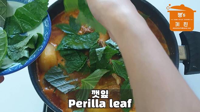 마지막으로 깻잎을 넣고 불을 꺼줍니다