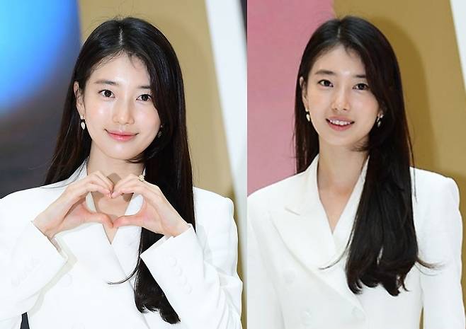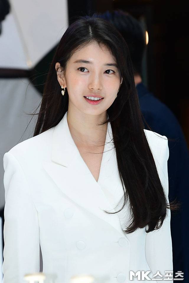 사진 속 수지의 헤어스타일은 스트레이트하게 떨어지는 스타일로 과한 스타일링이 없어 매우 자연스럽고 단아한 인상을 줍니다.