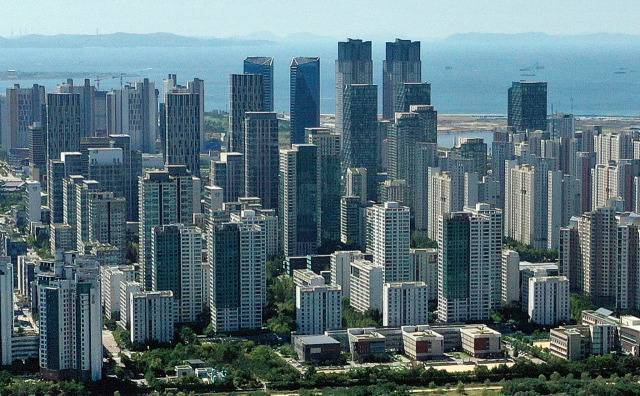송도는 매립지 전역에 50층 이상 아파트, 오피스 빌딩, 고밀 복합단지를 갖추고 있으며, 아시아권에서도 손꼽히는 도시 외형을 보여준다. 센트럴파크, 동북아무역센터, G타워 등 미래적 랜드마크가 집중된 모습은 실제로 두바이와 비교될 만하다.