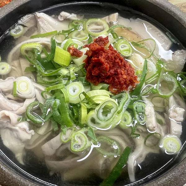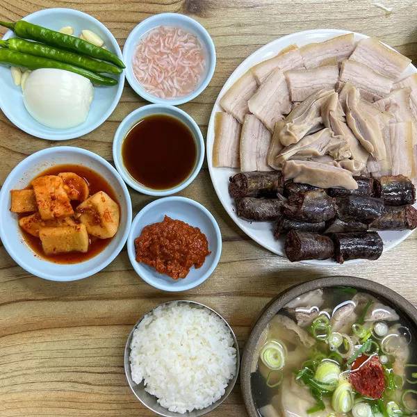 주메뉴인 돼지 국밥 외에 국밥 육수를 사용한 고기칼국수와 생면칼국수, 수육과 삼겹구이 등 부대 메뉴도 선택이 가능하다. 모던한 느낌의 공간에서 뒷맛이 깔끔한 돼지 국밥을 즐기기에 안성맞춤이다.