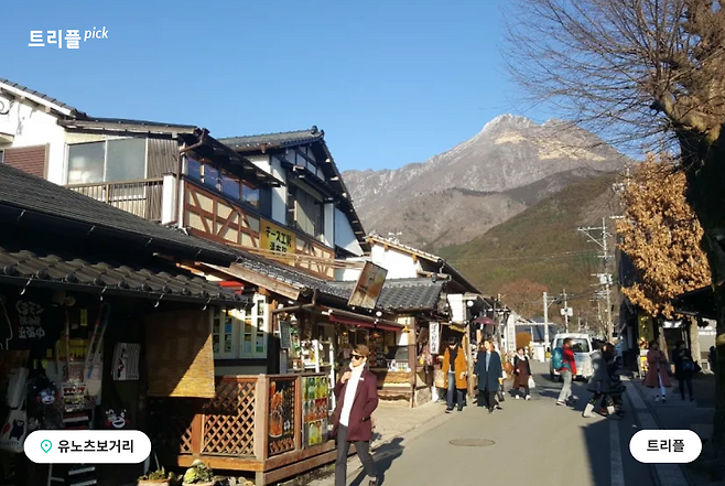 유후인 역부터 긴린코 호수까지 이어져 있는 유후인의 대표적인 상점가. 길을 따라 기념품을 구매할 수 있는 상점과 맛집이 들어서 있어 천천히 둘러보기 좋다..