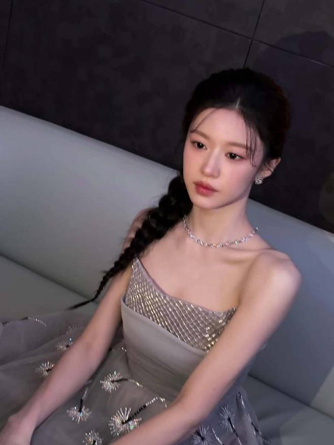 액세서리 역시 드레스와 조화를 이루는 미니멀한 디자인으로 선택됐다. 얇고 심플한 실버 네크리스와 작은 귀걸이는 과하지 않은 포인트로, 전체적으로 절제된 세련미를 살린다. 메이크업은 내추럴한 피부 표현과 또렷한 눈매 연출에 집중해, 과한 색조 없이 본연의 매력을 부각시켰다.