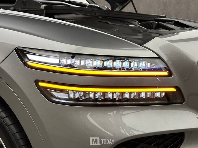 전면부는 GV80 페이스리프트와 전반적인 틀은 유사하다. 헤드램프는 G90처럼 'MLA(Micro Lens Array) 타입 LED 시스템'이 적용됐고, 라디에이터 그릴은 두 개의 G-Matrix 패턴을 겹쳐 입체적이고 역동적으로 표현했다.