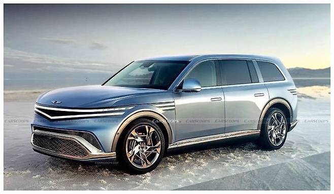 아직 공식 디자인은 공개되지 않았지만, 유출된 위장막 테스트카와 예상도를 통해 GV70, GV80보다 크고 세련된 실루엣을 확인할 수 있습니다. 전면에는 제네시스의 시그니처인 두 줄 DRL이 더욱 얇고 넓게 적용되었으며, 후면부는 수평형 리어램프와 간결한 라인이 특징입니다. 특히, 코치 도어(센터 오픈형 도어)는 기존 SUV에서 보기 드문 고급스러운 요소로, 리무진급 감성을 강조합니다.