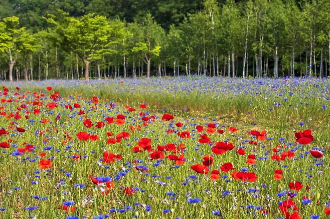 공원 내 남청색 계열의 수레국화가 일제히 피어나면, 꽃밭 전체가 푸른 바다처럼 변한다. 초록의 잔디와 대비되는 선명한 파랑은 한눈에도 특별한 인상을 남긴다. 꽃밭 사이로 조성된 자연산책로를 따라 걷다 보면, 마치 유럽 어느 전원마을에 들어선 듯한 착각을 일으킬 만큼 감각적인 풍경이 펼쳐진다.