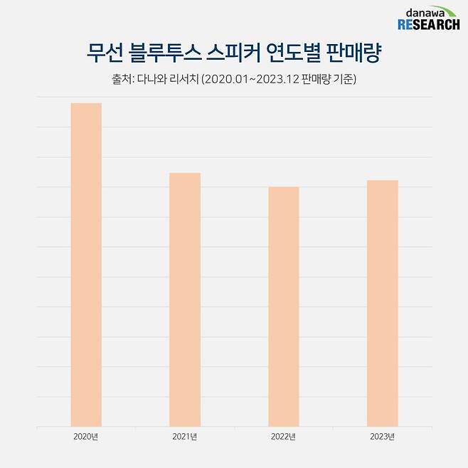 무선 블루투스 스피커 판매량은 야외 활동에 영향을 받는다. 전원 연결 없이 어디서든 간편하게 노래를 들을 수 있어 실내보다는 캠핑이나 여행 등 야외 활동을 할 때 주로 사용하기 때문. 2020년~2022년은 코로나로 인해 야외 활동 인구가 크게 줄어들면서 무선 블루투스 스피커 시장도 큰 타격을 입었다. 2021년 무선 블루투스 스피커 판매량은 전년 대비 무려 21%나 감소했으며, 2022년에도 5% 떨어졌다.