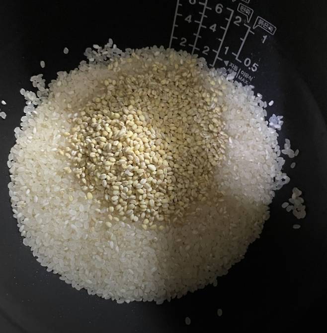 밥을 지을 때 멥쌀과 찰보리를 1:1 비율로 섞어 조리하면 됩니다.