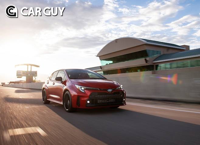 토요타 GR 코롤라는 전륜구동 준중형 해치백 ‘코롤라 스포츠’의 고성능 버전이다. 최고출력 304마력, 최대토크 37.7kg.m를 발휘하는 1.6L 3기통 터보 엔진과 6단 수동변속기가 맞물렸다.