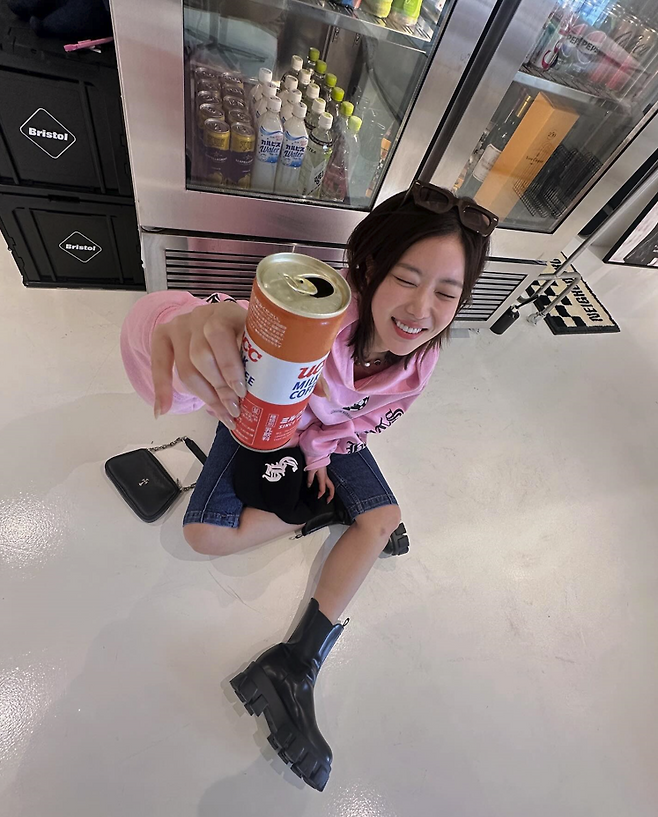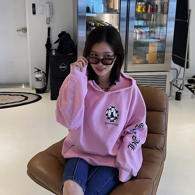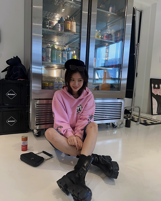 짧은 데님 팬츠와 오버핏 핑크색 후드티의 조합이 정말 멋진 임수향 님의 꾸안꾸룩 코디! 핑크색 후드티 코디가 고민이라면, 오늘 임수향의 스타일을 참고해 보면 좋을 것 같아요.