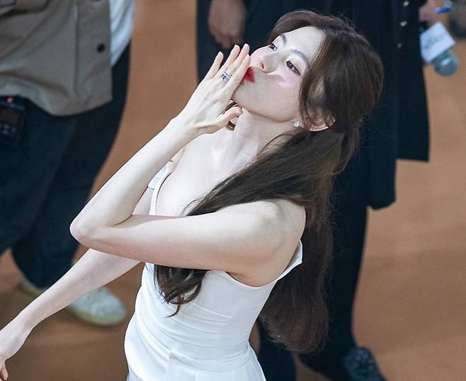 또한 한소희는 행사에 참석한 오프숄더 드레스 사진도 업로드했습니다.