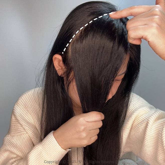 1.귀 라인으로 앞쪽 머리카락을 나눠줘요