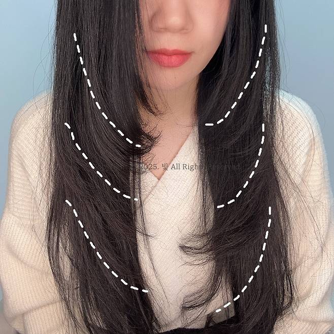 안쪽 머리카락(아래)부터 하시길 추천할게요!