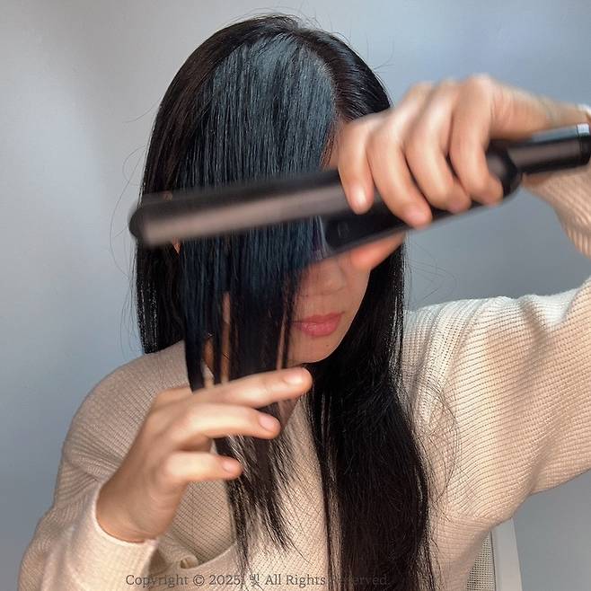 이렇게 양쪽 끝부분을 고데기로 말아주면 됨!