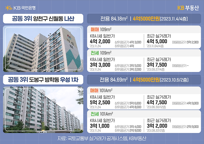 공동 3위 4억5000만원에 거래된 신월동 나산 & 방학동 우성 1차