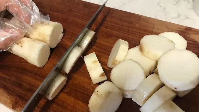 손질 전 미리 마나 토란을 식초 물에 담가두는 것도 자극을 줄이는 지혜로운 방법입니다.