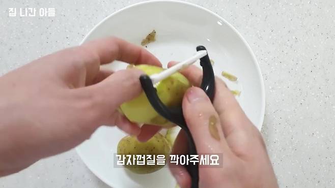 감자채는 물기를 꼭 짜주세요 전분 제거 후에는 키친타월 등으로 감자의 물기를 잘 닦아주세요