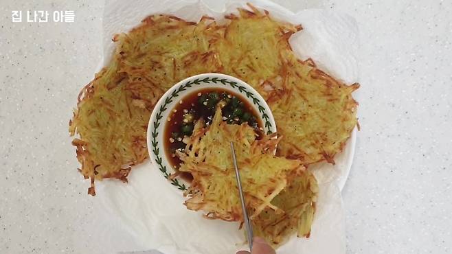드디어 완성! 한입 맛보면 멈출 수 없는 감자채전 겉은 바삭, 속은 촉촉한 감자채전 완성! 따뜻할 때 바로 드셔보세요.