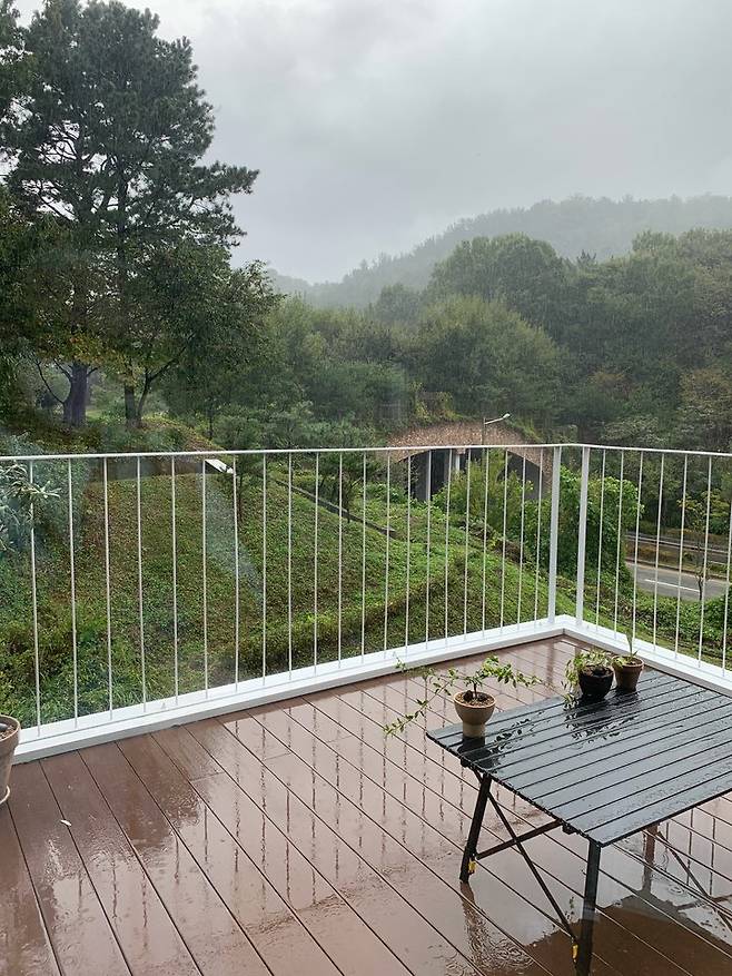 저희 집 테라스에서 보이는 뷰예요. 제가 정말 사랑하는 뷰이죠.