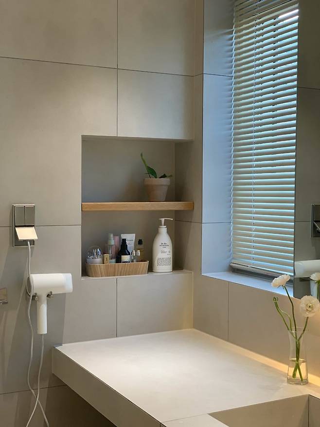 저희 집 욕실 중에서 유일하게 욕조가 있는 공간이에요. 조적 욕조로 계획하였고 생각보다 크게 나와서 아이들이 참 좋아하는 공간이에요. 그리고 저는 눈 내리는 날 홀로 반신욕 하고 있는 저를 꿈꿔봅니다 ^^