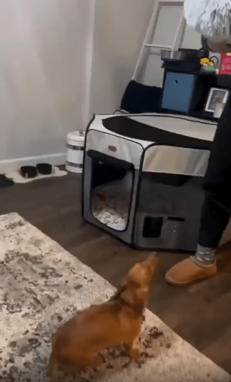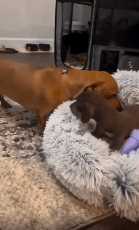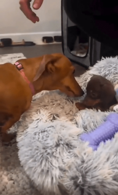 기다렸던 순간! 새끼 강아지를 본 닥스훈트의 귀여운 반응