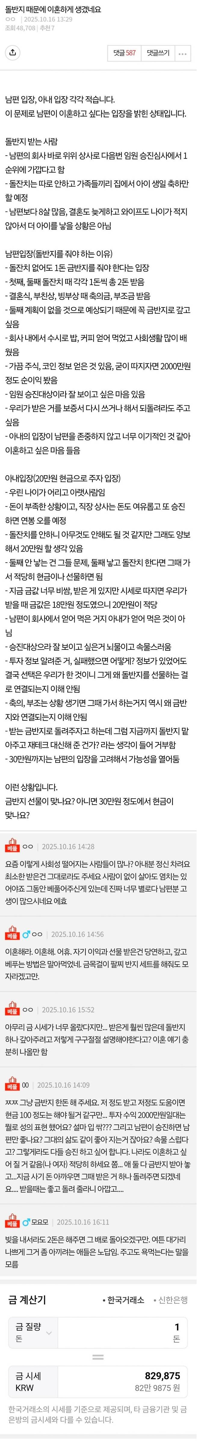 돌반지 때문에 이혼하게 생겼네요