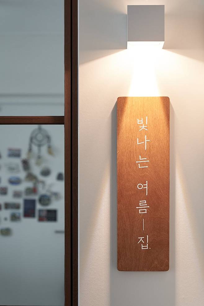 그래서 탄생한 이름이 ‘빛나는 여름 집’입니다. 저희 아이와 저, 그리고 남편의 이름, 생일과 관련된 의미를 하나씩 가져왔습니다. 집의 이름을 짓고 나니 다른 사람에게 소개하기도 좋고 집에 대한 애착도 더 생기는 거 같더라고요. 지금도 늘 주변 사람들에게 빛나는 여름 집에 놀러 오라고 소개를 합니다.