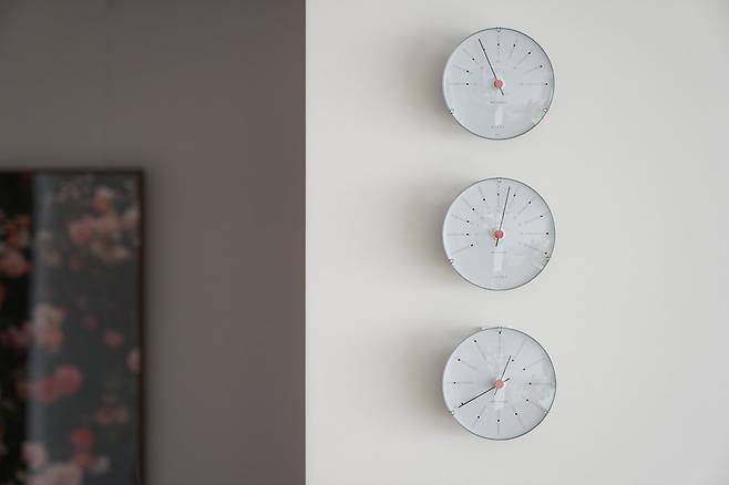 나름의 소소한 팁을 드리자면 작은 소품이 의외로 분위기 결정에 큰 역할을 한다는 것입니다. 조명이나 시계 등이 별거 아닌 거 같아도 집의 분위기를 크게 좌우하더라고요. 저도 지금 거실에 설치해둔 시계를 구입하기 전에 온도, 습도계까지 다 구매해서 벽에 거는 게 과하지는 않을까 엄청나게 고민했었는데요. 실제로 이 세 개를 벽에 주르륵 걸고 나니 분위기가 훨씬 살더라고요. 그리고 손님분 중에서도 거실 구석에 내려와 있는 플라워팟 조명을 보며 집과 너무 잘 어울리고 집 분위기를 빈티지스럽게 만들어주는데 한몫한다는 말을 해주시는 분들이 있었어요. 그런 경험들을 통해 큰 가구들보다 작은 소품들이 큰 역할을 할 수 있다는 것을 느꼈습니다. 내 집에 어울리는 소품들에 과감하게 투자하시길 조언 드려봅니다.
