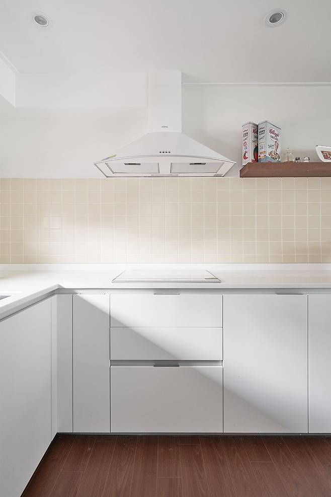 예산이 조금 올라가기는 했지만 이 타일만큼은 포기할 수 없었고 결과적으로는 저희 집에 산뜻한 느낌을 주는 버터 색 주방이 완성되어 만족스럽습니다.
