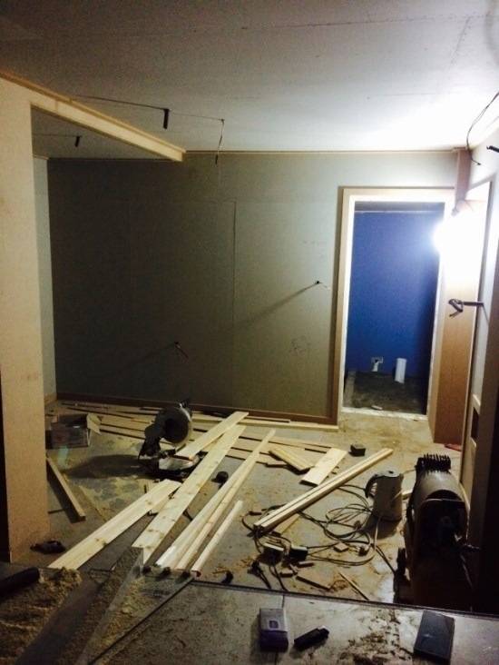 흙집이라 벽에 배가 부른곳도 많아서 실내는 가벽작업이 필요했습니다. 목수분들이 5시에 퇴근하시면 잡다한 일은 제가 밤에 조금씩 했습니다. TV다이랑, 천장, 몰딩, 걸레받이 등 하루라도 일당 줄일 수 있었습니다.