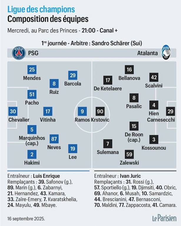 파리 생제르맹(PSG)은 오는 18일(한국시간) 오전 4시 프랑스 파리의 파르크 데 프랭스에서 아탈란타(이탈리아)와 2025-2026 유럽축구연맹(UEFA) 챔피언스리그 리그 페이지 1라운드 홈 경기를 치른다.