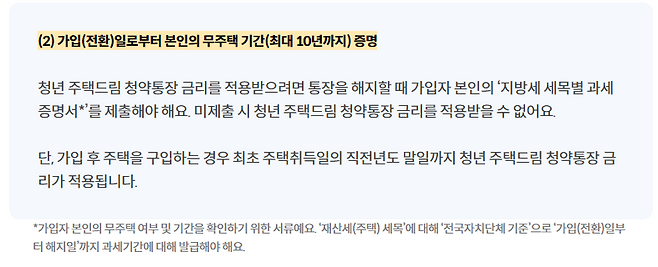 무주택확인서(청년 주택드림 청약통장 비과세신청용)를 제출해야 합니다. 상품 가입 시 작성할 수 있어요.