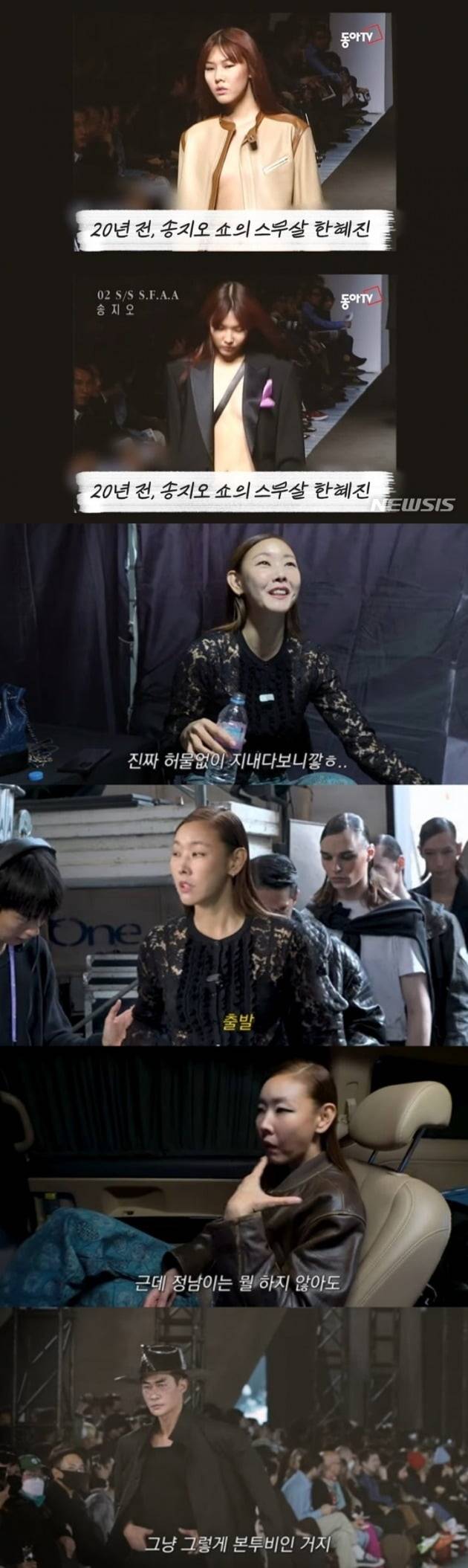 이후 한혜진은 디자이너 송지오와의 인연을 떠올렸다. 그는 "20년 전의 송지오 쇼의 스무살 때 섰다. 남자 슈트를 입고 올랐는데 강렬한 기억이었다"라고 말했다.