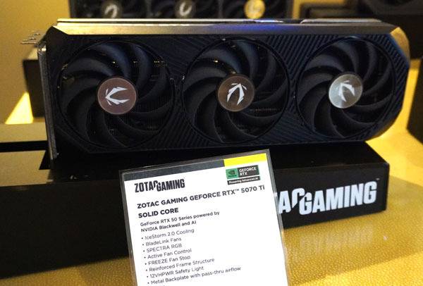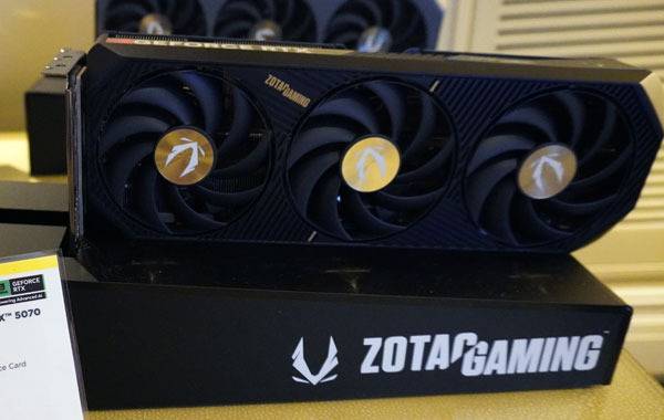CES 2025 ZOTAC 전시장에서는 지포스 RTX 5090과 RTX 5080 기반 제품을 포함해 RTX 5070 Ti 및 RTX 5070 모델도 접할 수 있었다. 상위급 모델들과 같이 트리플 쿨링팬 기반으로, 부하에 따라 팬 속도를 지능적으로 제어해 소음을 감소시키고 팬의 수명을 연장하는 오토 팬 스탑 기술이 적용되었다.