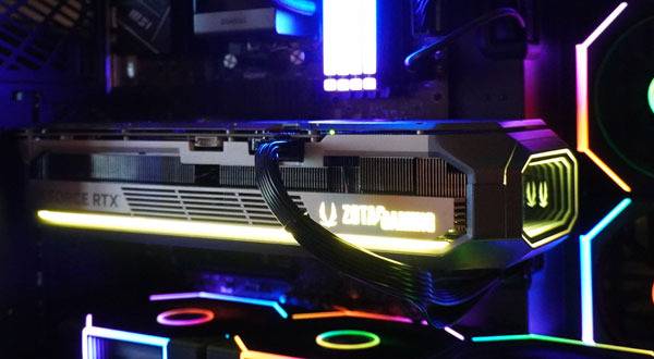 조화로운 ARGB 효과를 추구하는 게이머를 위해, ZOTAC GeForce RTX 5090, 5080, 5070 Ti 시리즈 그래픽카드에는 스펙트라 링크 인터페이스가 ㅈ 이 인터페이스를 통해 그래픽카드와 호환되는 RGB 메인보드를 케이블로 연결해 메인보드의 조명 효과를 그래픽카드와 동기화할 수 있어 일체감있는 PC로 만들 수 있다.