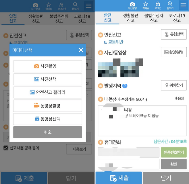 4. 사진 및 내용 첨부해 제출하면 신고 접수 완료!