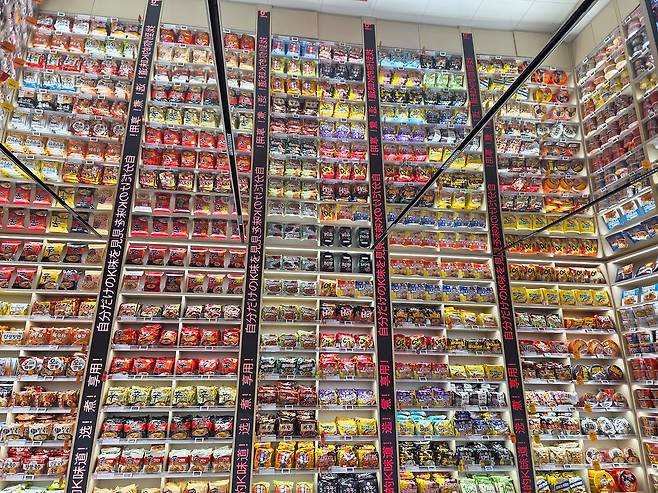 서울 지하철 명동역 1번 출구 인근에 들어선, 라면 면발을 형상화한 대형 오브제가 외벽을 타고 흐르는 이곳은 명동의 새로운 랜드마크로 떠오르고 있어요. 1층 곳곳에서는 해외에서 인기를 끌고 있는 K-푸드들을 만날 수 있고, 2층으로 올라가면 2.8m 높이에 달하는 ‘라면 아카이브 월’이 반겨주는데, 바닥부터 천장까지 170여 종의 봉지라면이 도서관 서가처럼 빼곡히 박혀 있는 모습이 인상적입니다. 라면을 직접 맛보고 체험하고픈 외국인 관광객들의 수요를 반영했고, 끓여 먹는 라면에 익숙해진 외국인 니즈를 반영해 봉지라면 비중을 70%까지 높였어요. 처음 써보는 조리기구지만 4개 국어로 설명돼 외국인들도 어렵지 않게 체험할 수 있죠.