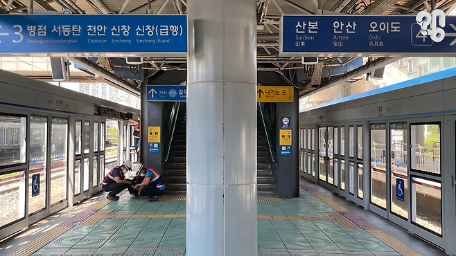 “저희 역 같은 경우에는 상선 하선이 각각 1-4호선이 붙어 있거든요. 1호선 앞에는 4호선이고, 4호선 앞에 1호선 이런 식으로 돼 있거든요. 1호선 상선을 타고 가다가 4호선 상선을 이용하려고 하면, 내리자마자 바로 앞으로 가면 되는 거니까 한 3초? 걸려서 타는 거죠.”