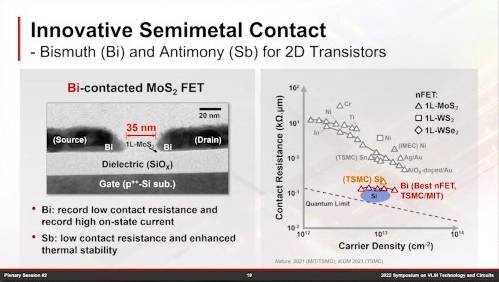 TSMC의 자료에 따르면 채널의 모양이 면(2D) 형태인 GAA 구조에서는 채널 소재를 실리콘에서 이황화텅스텐(WS2), 이황화몰리브덴(MoS2), 이셀레늄화텅스텐(WSe2) 등으로 바꾸는 방법을 연구 중이라고 발표했습니다.