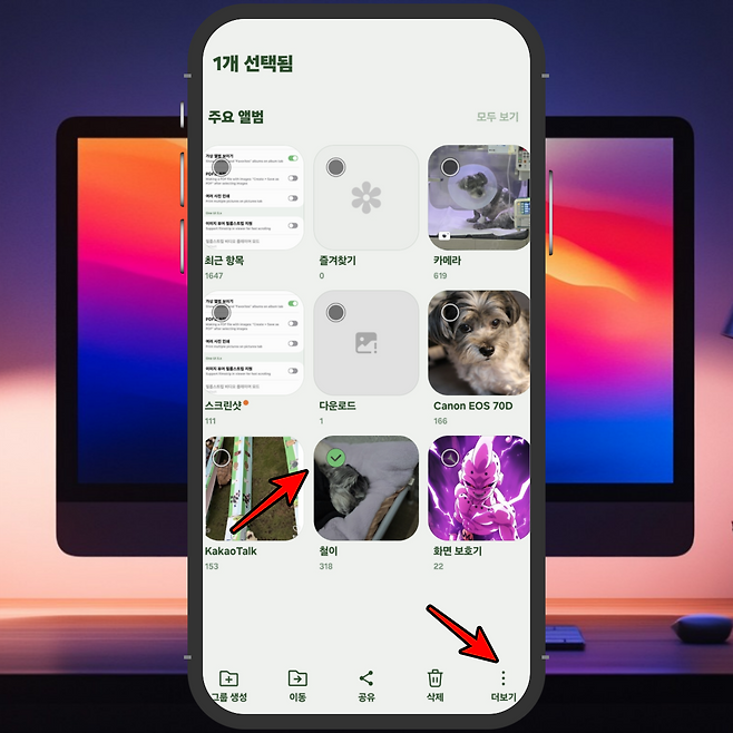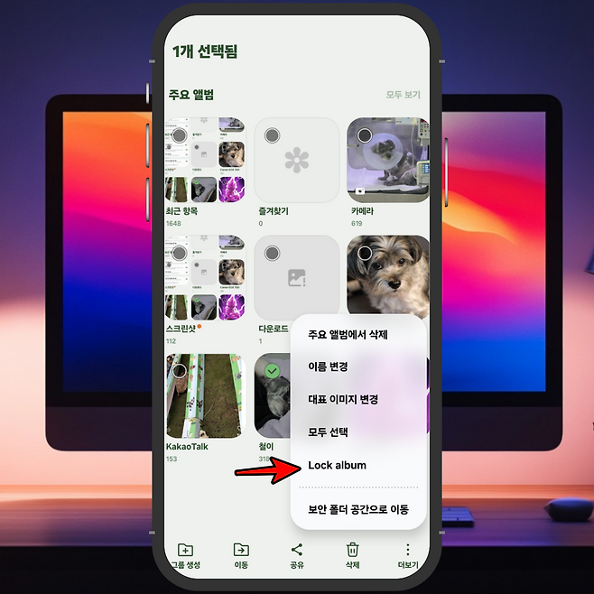 위 과정을 마치면, 이후 갤러리에서 원하는 앨범을 잠금 설정할 수 있는 옵션이 나타납니다.