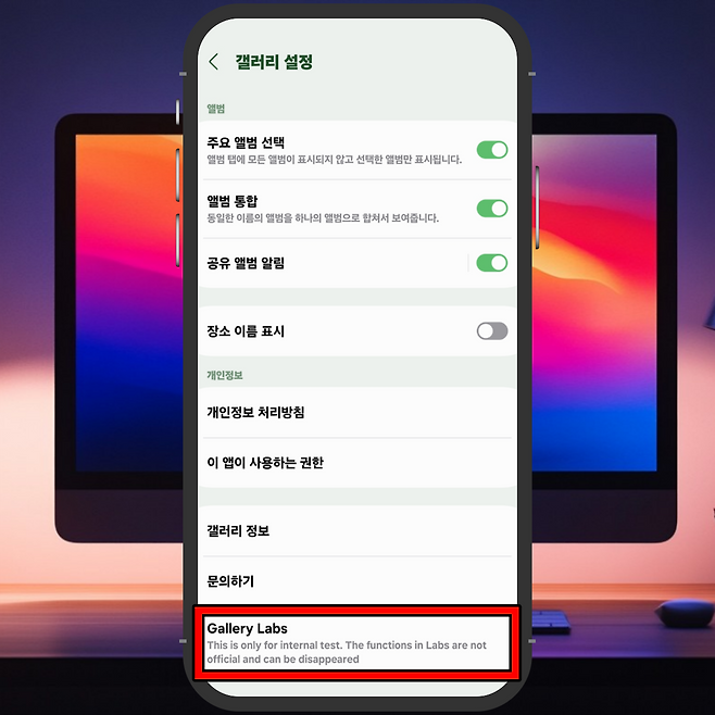 기본 갤러리 앱에는 일반 사용자가 쉽게 접근할 수 없는 실험 기능 메뉴인 Gallery Labs가 있습니다.