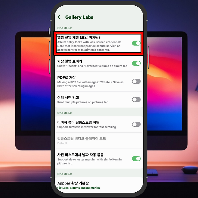 Gallery Labs 기능을 통해 앨범 잠금 기능 사용하기