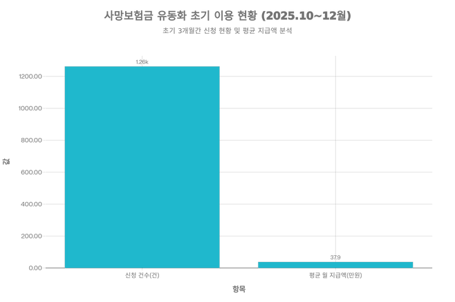 제도가 시행된 2025년 10월 30일부터 12월 중순까지의 초기 통계를 보면, 사망보험금 유동화에 대한 수요가 적지 않게 나타난다. 금융당국 자료에 따르면 이 기간 동안 총 1,262건이 사망보험금 유동화를 신청했고, 초년도 지급액 기준으로 약 57억 5천만 원이 지급됐다.