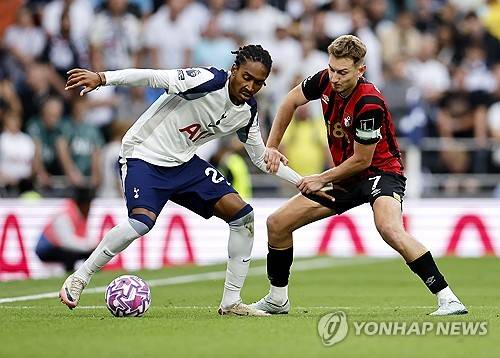 epa12337044 Djed Spence (L) of Tottenham in action against David Brooks of Bournemouth during the English Premier League soccer match between Tottenham Hotspur and AFC Bournemouth, in London, Britain, 30 August 2025. EPA/TOLGA AKMEN EDITORIAL USE ONLY. No use with unauthorized audio, video, data, fixture lists, club/league logos, 'live' services or NFTs. Online in-match use limited to 120 images, no video emulation. No use in betting, games or single club/league/player publications.