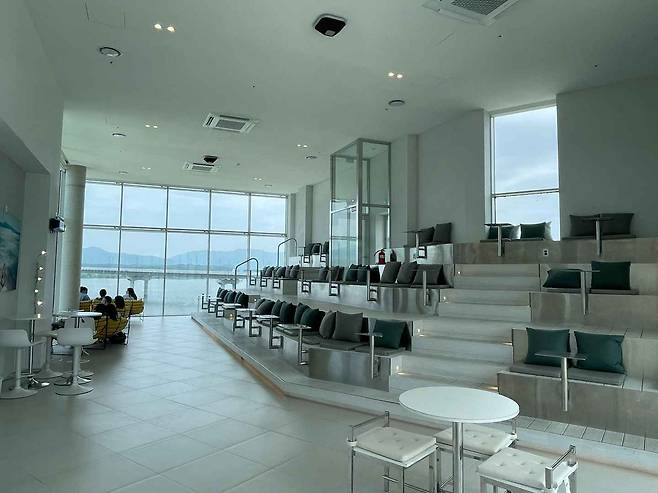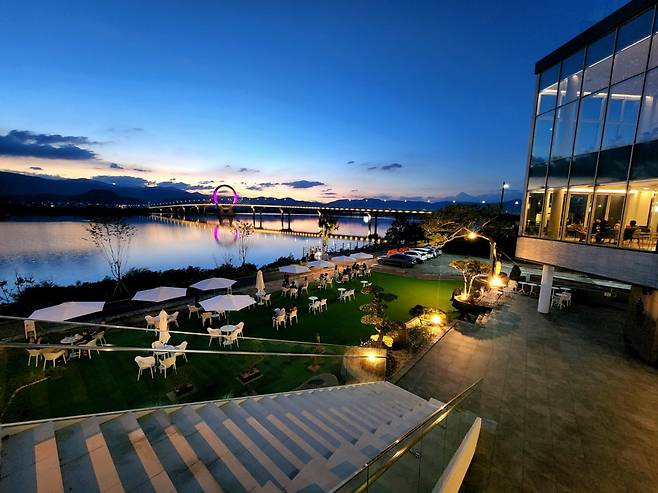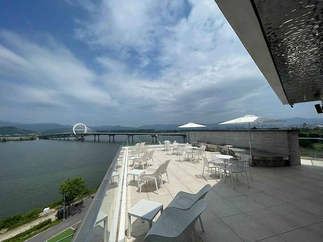 반면, 3~4층은 노키즈존으로 조용하고 여유로운 분위기를 선호하는 분들에게 잘 맞아요. 특히 루프탑에서는 춘천대교와 의암호의 탁 트인 풍경이 펼쳐져 멍하니 바라보며 힐링하기 딱 좋은 장소예요.