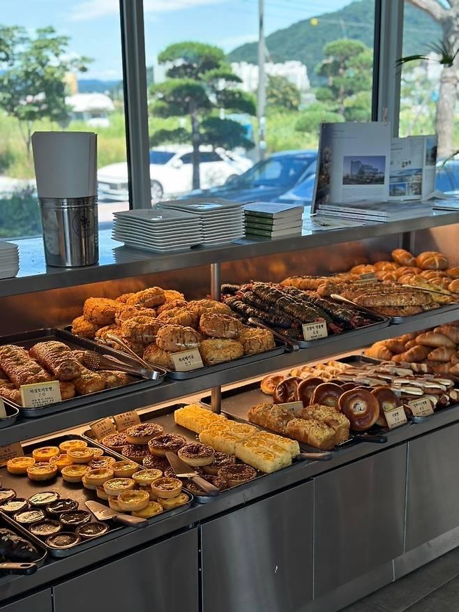 디카페인 원두 변경이 무료라 커피를 부담스러워하는 분들도 걱정 없고, 음료 외에도 케이크·바게트·소금빵 등 다양한 베이커리가 함께 준비돼 있어요.