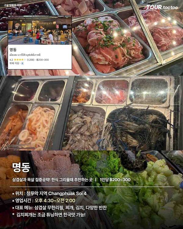저렴한 가격에 배부르게 먹고 싶다면 치앙마이 맛집 구글맵에서 명동 고기뷔페를 꼭 찾아보세요.