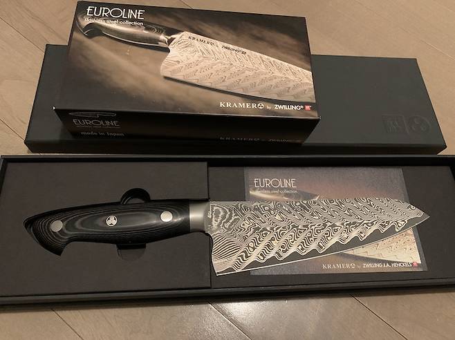 부엌칼 끝판왕이라 불리는 밥 크레이머 다마스커스, 산도쿠랑 쉐프랑 엄청 고민하다 산도쿠로 구매했어요. 두개 다 사고 싶었지만 너무 비싸기도 하고 쉐프칼은 이미 두개나 있어서